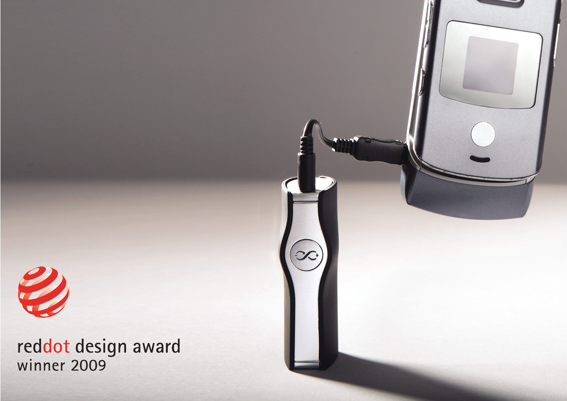 המטען הנייד של מוטורולה, שזכה בפרס העיצוב היוקרתי Red Dot לשנת 2009, משלב פונקציונליות גבוהה עם עיצוב אלגנטי ומודרני.